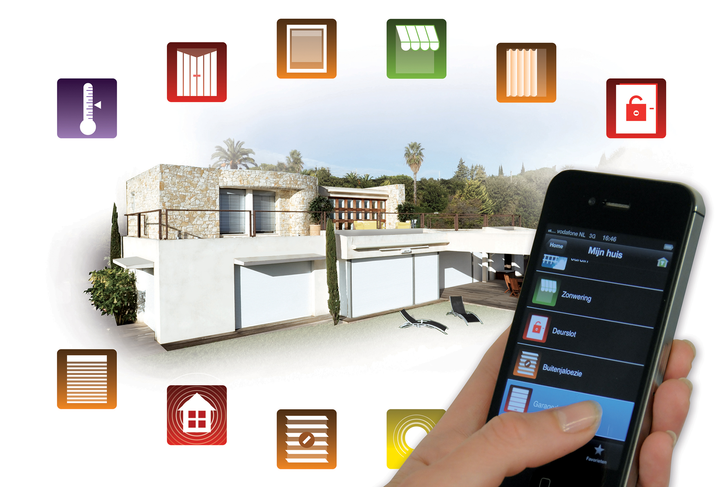 De motoren kan u bedienen met een schakelaar, handzender of demotica systeem. Wij bieden u een ruim assortiment aan handzenders en tijdschakelaars. Ook is het mogelijk om met het Somfy huisautomatisering Tahoma systeem uw rolluik en zonwering op afstand te bedienen met uw tablet of smartphone.